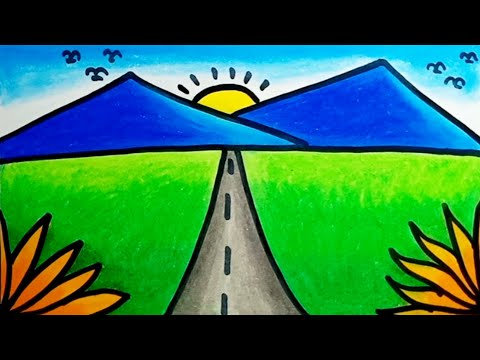 How To Draw Easy Scenery |How To Draw Mountain And Natural Scenery Easy Step By Step For Kids - Simple Sceneries For Kids
